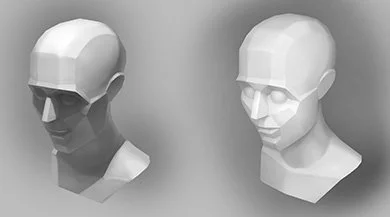 Perspective, likeness, stylization, and ethnic facial features.